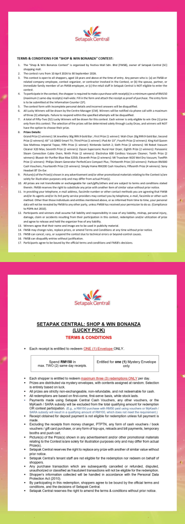Shop & Win Bonanza T&Cs